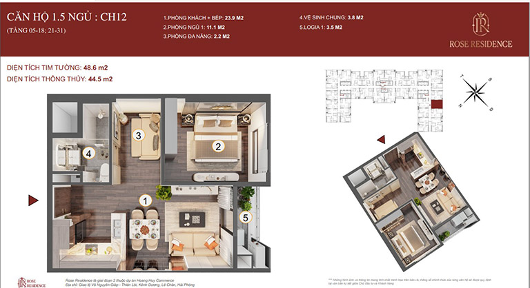 Với quy mô ấn tượng 36 tầng cao, Rose Residence cung cấp gần 1.000 căn hộ cao cấp, đáp ứng mọi nhu cầu an cư và đầu tư. Các loại hình căn hộ được thiết kế đa dạng, tối ưu công năng sử dụng: từ căn hộ 1 phòng ngủ tiện lợi, 1PN+1, 2PN, 2PN+1 linh hoạt cho đến căn hộ 3PN sang trọng.