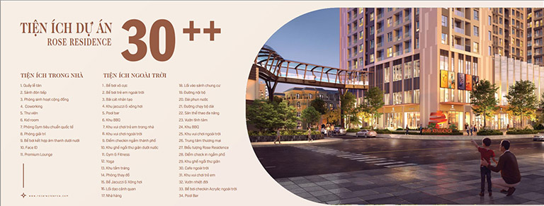 Rose Residence đã vượt xa định nghĩa của một nơi an cư thông thường, kiến tạo nên một không gian sống chuẩn nghỉ dưỡng 5 sao ngay giữa lòng thành phố. Nơi đây là sự hội tụ của một hệ sinh thái tiện ích độc quyền, được thiết kế tỉ mỉ để phục vụ đầy đủ mọi nhu cầu về sức khỏe, thư giãn, giải trí và giao thương của cư dân, mang đến trải nghiệm sống trọn vẹn và đẳng cấp mỗi ngày: