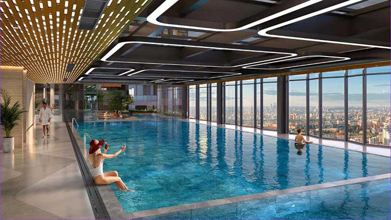 Dự án sở hữu chuỗi tiện ích bơi lội vượt trội với Bể bơi vô cực (Infinity Pool) trên cao mang đến tầm nhìn panorama tuyệt đẹp cùng Bể bơi bốn mùa trong nhà được kiểm soát nhiệt độ, tạo điều kiện lý tưởng cho cư dân rèn luyện sức khỏe quanh năm, bất chấp mọi điều kiện thời tiết. Đặc biệt, Rose Residence còn tiên phong trang bị Bể bơi truyền âm (Underwater Speaker), mang lại trải nghiệm thư giãn độc đáo chưa từng có tại Hải Phòng.
