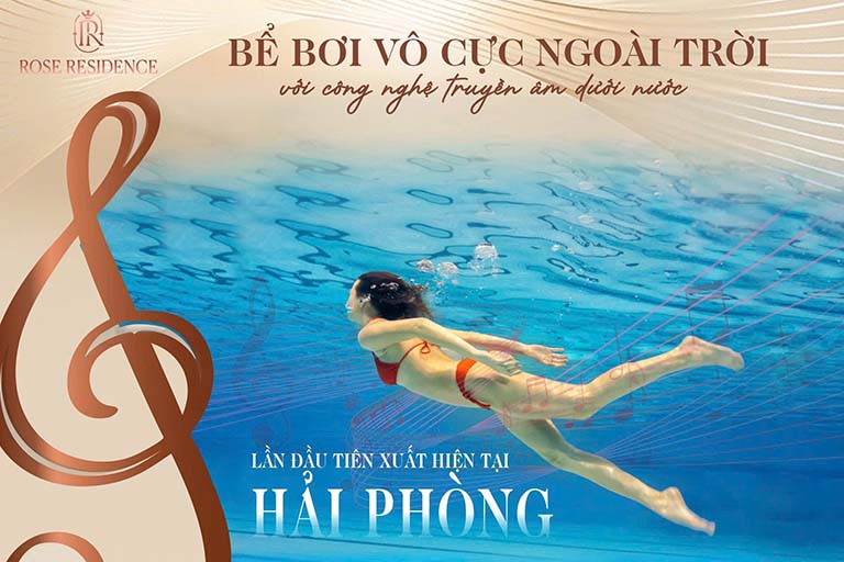Rose Residence tự hào là dự án đầu tiên tại Hải Phòng trang bị Công nghệ Truyền âm Dưới Nước (Underwater Speaker) tại khu vực bể bơi vô cực. Trải nghiệm thư giãn tuyệt đối này cho phép cư dân tận hưởng âm nhạc êm dịu ngay cả khi bơi lặn, biến hoạt động rèn luyện sức khỏe thành một liệu pháp tinh thần cao cấp.